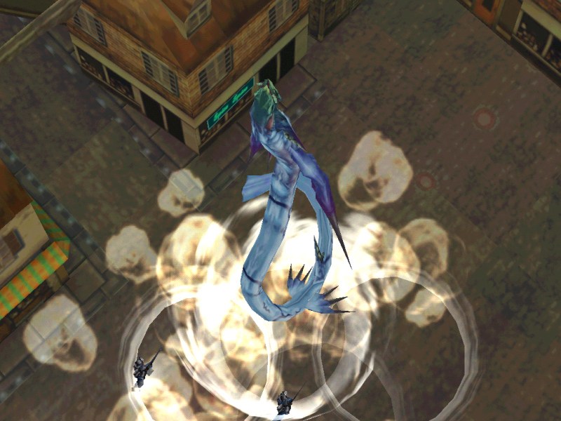 Leviathan Rises A strange monster Squall attacks in Dollet Leviathan emerges Leviathan pulls up a waterfall Rinoa's Special Attack