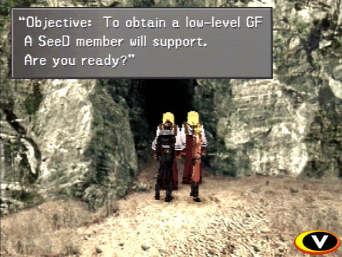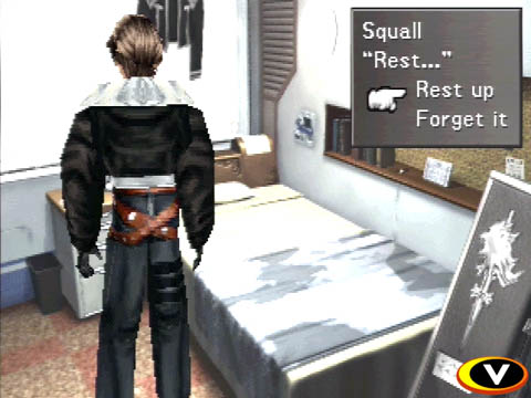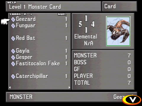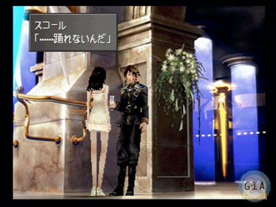 Card Game Screen (Triple Triad) Card Game Menu Squall talks to some female students Someone gives Squall some cards Squall chats on the way to the Training Centre Map of Balamb Garden In the Lobby of the Garden In the library corridor Training in the centre In Squall's bedroom Around the concert area The entrance to Garden's lobby Entrance to the Cave of Fire A battle in the Cave of Fire